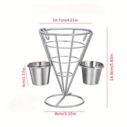 Wprowadź kreatywny styl do swojej kuchni z tą unikalną frytkownicą. Jej design inspirowany jest miniaturowym koszykiem do smażenia, idealnym do serwowania ulubionych przekąsek, takich jak frytki, kurczak i inne. Z dwoma małymi miseczkami na sosy lub dipy, jest to nie tylko praktyczne, ale także stylowy dodatek na stół lub do restauracji. To idealny wybór dla każdego miłośnika kulinariów, który ceni sobie wygodę i styl.
