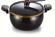 Ten wielofunkcyjny garnek do zupy i gotowania oferuje dużą pojemność 7 litrów, idealny do przygotowywania dużych ilości zupy, gulaszu i innych potraw. Powłoka non-stick ułatwia gotowanie i zapobiega przywieraniu jedzenia do garnka. Garnek jest odpowiedni do używania zarówno na kuchenkach indukcyjnych, jak i gazowych, co czyni go wszechstronnym wyborem do każdej kuchni. Eleganckie wykończenie z złotymi detalami oraz ergonomiczny uchwyt sprawiają, że garnek jest zarówno praktyczny, jak i stylowy.