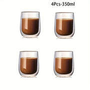 Zestaw 4 Szklanek Podwójnościennych – 350ml Szklanka do Napojów Gorących i Zimnych