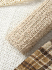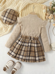 Eva Zimowy Strój dla Dzieci - Sweter z Golfem i Spódniczka w Kratę oraz Kapelusz