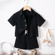 Zestaw Dziecięcy Milo został zaprojektowany zarówno z myślą o stylu, jak i komforcie. Składa się z prążkowanej bluzki z krótkim rękawem i pasujących szortów, idealny na ciepłe dni lub casualowy strój. Elastyczny pasek w talii oraz miękki materiał zapewniają wygodę przez cały dzień, a nowoczesny design nadaje świeży i modny wygląd. Idealny na każdy radosny dzień lub relaksujący moment na zewnątrz.