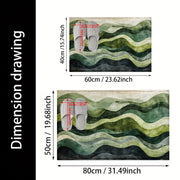 Ta luksusowa mata łazienkowa z geometrycznym wzorem falistym oferuje zarówno komfort, jak i styl dla Twojej łazienki lub przedpokoju. Materiał imitujący kaszmir jest miękki w dotyku i zapewnia doskonałą absorpcję, podczas gdy antypoślizgowy spód zapewnia bezpieczeństwo na mokrych podłogach. Mata nadaje się na każdą porę roku i jest idealna do tworzenia spokojnej i stylowej atmosfery w Twoim domu. Materiał jest oddychający i szybko schnie, co sprawia, że mata ta jest idealna do codziennego użytku.