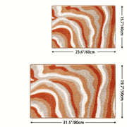 Ten geometryczny dywanik łazienkowy to idealne uzupełnienie Twojej łazienki. Miękki materiał poliesterowy jest nie tylko wygodny, ale również bardzo chłonny, dzięki czemu szybko wchłania wilgoć po prysznicu. Dywanik ma antystatyczny spód TPR, co sprawia, że pozostaje stabilnie na swoim miejscu, nawet na mokrej podłodze. Nowoczesny geometryczny wzór w kolorze pomarańczowym, beżowym i białym dodaje zabawnego, ale eleganckiego wyglądu Twojemu wnętrzu łazienki. Ponadto dywanik jest pralny w pralce, co ułatwia jego pielęgnację.