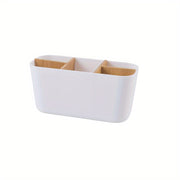 Ten kompaktowy i stylowy uchwyt na szczoteczki do zębów jest idealny do schludnego przechowywania wielu szczoteczek i tubek pasty do zębów. Z pięcioma praktycznymi przegródkami oferuje wystarczająco dużo miejsca dla całej rodziny. Połączenie matowego plastiku z bambusowymi akcentami nadaje Twojej łazience nowoczesny i naturalny wygląd. Wolnostojący i oszczędzający miejsce na każdym blacie umywalki.