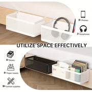 Ten regulowany metalowy kosz na przechowywanie oferuje praktyczne rozwiązanie do przechowywania w sypialni, biurze lub pokoju do nauki. Dzięki hakom możesz łatwo zawiesić kosz na krawędzi łóżka lub biurka, co umożliwia szybki dostęp do twoich rzeczy. Idealny do przechowywania książek, czasopism lub innych drobnych przedmiotów, które często potrzebujesz.