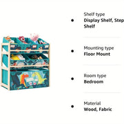 Ten wielofunkcyjny organizer do zabawek oferuje idealne rozwiązanie do przechowywania zabawek, książek i innych akcesoriów w pokoju dziecięcym. Drewniana konstrukcja ma trzy poziomy z materiałowymi pojemnikami, które są łatwo dostępne dla dzieci. Wesoła tematyka zwierząt sprawia, że ten organizer jest nie tylko funkcjonalny, ale także atrakcyjnym dodatkiem do pokoju. Organizer pomaga utrzymać porządek i zorganizowaną przestrzeń, idealny dla dzieci w każdym wieku.