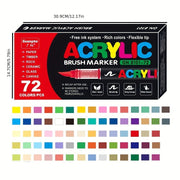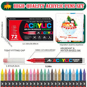 Ten zestaw 72 markerów akrylowych oferuje bogaty wybór żywych kolorów, idealnych do różnych projektów malarskich na różnych materiałach, takich jak kamień, szkło, drewno, ceramika i tkaniny. Markery zawierają farbę akrylową na bazie wody i mają elastyczny pędzelek, co pozwala na precyzyjną pracę oraz większe ruchy malarskie. Dzięki szczelnym nakrętkom tusz pozostaje świeży, a markery są łatwe do przechowywania. Idealne zarówno do dzieł sztuki, jak i ręcznie robionych prezentów, doskonałe do kreatywnej ekspresji podczas świąt lub każdej innej pory roku.