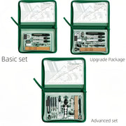 Ten wszechstronny zestaw narzędzi oferuje wszystko, co potrzebne do precyzyjnych rysunków technicznych i projektów. Wykonany z wysokiej jakości stali nierdzewnej i trwałego plastiku, każde narzędzie zapewnia niezawodną precyzję i długą żywotność. Idealny dla studentów, inżynierów i architektów, którzy chcą połączyć swoją kreatywność z dokładnością. Praktyczna etui zapewnia, że wszystkie elementy są uporządkowane i chronione podczas transportu.