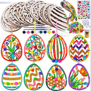 Ten zestaw DIY zawiera wszystko, co potrzebne do stworzenia pięknych, kolorowych pisanek. W zestawie znajdują się nieprzetworzone drewniane jajka z kwiatowymi i zygzakowymi wzorami, brokat, pomponiki, farby oraz wstążki, co zapewnia radosne i kreatywne doświadczenie. To idealna aktywność zarówno dla dzieci, jak i dorosłych, doskonała do dekoracji wielkanocnych lub jako wesoła aktywność grupowa w klasie. Puść wodze swojej wyobraźni i stwórz unikalne, ręcznie robione pisanki, które możesz pokazać w swoim domu lub ogrodzie.
