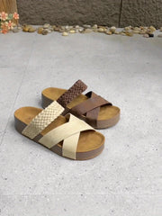 Te eleganckie sandały na platformie łączą styl i komfort, tworząc idealny letni wygląd. Wplecione paski krzyżowe nadają im elegancki charakter, a gruba podeszwa zapewnia dodatkowe wsparcie i stabilność. Niezależnie od tego, czy spędzasz dzień w mieście, czy masz luźne wyjście, te sandały są idealnym wyborem na każdą okazję. Pasują do różnych stylizacji i są doskonałe na długie letnie dni.