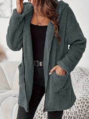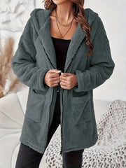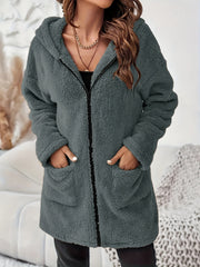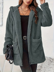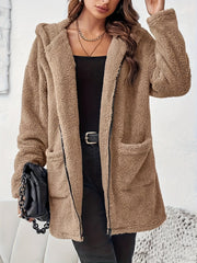 Miękki Pluszowy Zimowy Płaszcz z Zipperem i Kieszeniami na Łatki - Ciepły i Wygodny Płaszcz na Zimne Dni