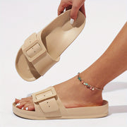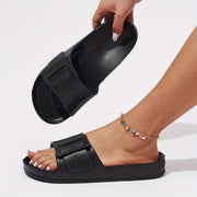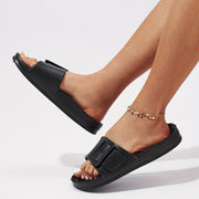 Te regulowane klapki damskie oferują idealny komfort zarówno w domu, jak i na zewnątrz. Miękka, gumowa podeszwa zapewnia wsparcie przy każdym kroku, a regulowany zamek pozwala dostosować klapki do własnych potrzeb. Prosty design sprawia, że są idealne do codziennego użytku, niezależnie od tego, czy idziesz na spacer, czy relaksujesz się na plaży. Te klapki łączą funkcjonalność ze stylem w bezwysiłkowy sposób.