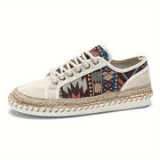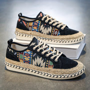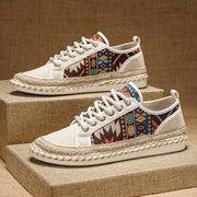 Boho Espadryle Sneakersy dla Mężczyzn – Oddychająca Kanwa z Kolorowym Haftem