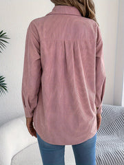 Casualowa Kurtka Sztruksowa Damska – Długie Rękawy i Klasyczny Kołnierz, Idealna na Jesień i Zimę