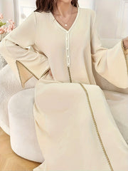 Ta elegancka djellaba dla dam oferuje idealną równowagę między stylem a komfortem. Projekt z rozciętymi rękawami zapewnia wyrafinowany wygląd, podczas gdy wysokiej jakości wykończenie nadaje całości luksusowe wrażenie. Ta djellaba jest idealna na specjalne okazje i można ją łatwo nosić podczas uroczystych chwil lub innych ważnych wydarzeń. Oddychający materiał zapewnia komfort przez cały dzień, a stylowy design sprawia, że zawsze robisz odpowiednie wrażenie.
