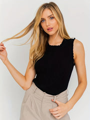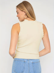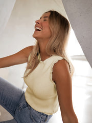 Elegancka Top bez Rękawów z Błyszczącymi Pasami i Kraciastymi Krawędziami
