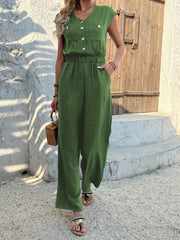 Elegancki kombinezon V-neck dla kobiet – Wysoki stan i casualowy styl