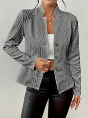 Sofia Woven Jacket - Stylowa Kurtka Jesień/Zima z Guzikami i Długimi Rękawami