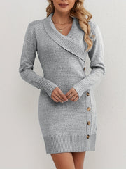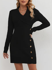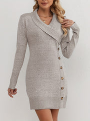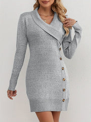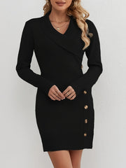 Ta elegancka sukienka sweter dla kobiet oferuje idealną równowagę między stylem a komfortem. Wyszukany dekolt w kształcie litery V oraz dekoracyjne guziki po bokach nadają sukience szykownego wyglądu, podczas gdy miękki materiał dzianinowy zapewnia ciepło w chłodniejsze miesiące. Długie rękawy i dopasowany krój bodycon sprawiają, że sukienka jest idealna zarówno na casualowe, jak i bardziej eleganckie okazje w jesieni i zimie. Must-have dla każdej modnej kobiety.
