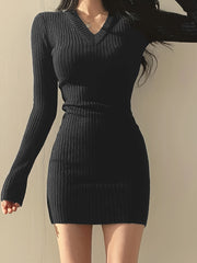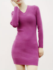 Sukienka Sweterkowa Eva - Elegancki Dekolt w Serek na Jesień i Zimę