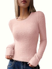 Ten miękki sweter dla kobiet oferuje doskonałe połączenie komfortu i stylu. Subtelny, delikatny wzór dzianiny zapewnia wyrafinowany wygląd, podczas gdy elastyczne mankiety przy rękawach i talii dodatkowo zapewniają ciepło. Prosty design z okrągłym dekoltem sprawia, że jest idealny zarówno do codziennych, jak i bardziej eleganckich stylizacji. Ten sweter to doskonały wybór na chłodniejsze dni jesieni i zimy.