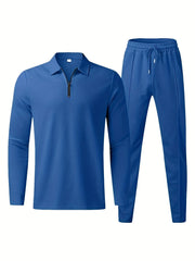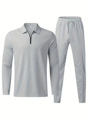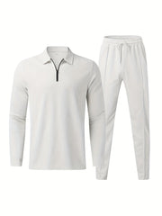 Ten casualowy zestaw dla mężczyzn składający się z 2 części jest idealny na wiosnę i jesień, z elegancką koszulą polo na zamek i wygodnymi spodniami z elastycznym pasem. Wafelowy wzór dodaje subtelnej, nowoczesnej tekstury całości, nadając jej wyrafinowany wygląd. Zestaw został zaprojektowany z myślą o maksymalnym komforcie i wszechstronności, niezależnie od tego, czy relaksujesz się w domu, czy wybierasz się na casualowy wypad. Ciesz się luksusem dobrze dopasowanego i oddychającego stroju, który chcesz nosić każdego dnia.