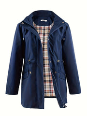 Ta wszechstronna kurtka łączy styl i funkcjonalność na chłodniejsze sezony. Kurtka ma praktyczny kaptur oraz regulowany sznurek, który pozwala dostosować dopasowanie do własnych potrzeb. Gładka zewnętrzna część w połączeniu z kraciastą podszewką oferuje nowoczesny wygląd, idealny do codziennych stylizacji. Ta kurtka jest doskonała na jesień i wiosnę i można ją łatwo założyć na casualowy strój, aby pozostać ciepłym i komfortowym.