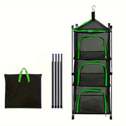 Ten praktyczny 3-poziomowy stojak na rzeczy to must-have dla każdego miłośnika kempingów! Oferuje wygodny sposób na przechowywanie sprzętu kuchennego, zastawy stołowej, a nawet owoców i warzyw w suchym i uporządkowanym stanie. Stojak jest składany, lekki i można go łatwo zawiesić na haczyku, co czyni go idealnym do użytku na zewnątrz. Dzięki trwałej konstrukcji z nylonu, stojak jest odporny na warunki atmosferyczne, idealny na każdą wyprawę kempingową!