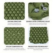 TrailComfort Namiotowy Materac Powietrzny to idealny towarzysz dla miłośników kempingu i przygód na świeżym powietrzu. Dzięki lekkiej wadze i kompaktowej torbie do przechowywania, możesz bez trudu zabrać ten materac wszędzie ze sobą. Struktura w kształcie plastra miodu zapewnia optymalne wsparcie i komfort, podczas gdy trwała powłoka nylonowa TPU chroni przed wilgocią i szorstkimi powierzchniami. Idealny do kempingu, trekkingu i backpackingu!