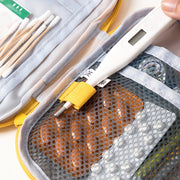 - Inteligentny Układ: Wyposażona w oddychające siatkowe kieszenie, przezroczystą kieszeń oraz elastyczny pierścień dla optymalnej organizacji leków i materiałów pierwszej pomocy.