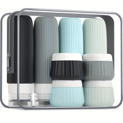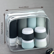 Ten zestaw składa się z ośmiu szczelnych silikonowych butelek i pojemników, zapakowanych w przezroczystą, elastyczną kosmetyczkę. Żebrowana tekstura zapewnia pewny chwyt i zapobiega ślizganiu się podczas użycia. Wszystkie butelki są zatwierdzone przez TSA i idealne do zabrania ulubionych kosmetyków podczas podróży. Dzięki kompaktowym rozmiarom łatwo mieszczą się w każdej walizce lub bagażu podręcznym.