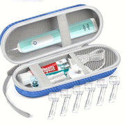 Zachowaj swoją szczoteczkę elektryczną w bezpiecznym i higienicznym miejscu dzięki temu solidnemu etui podróżnemu. Twardy materiał EVA chroni przed uderzeniami i zarysowaniami, a wbudowana kieszonka z siateczki i elastyczna taśma zapewniają, że szczoteczka i akcesoria pozostaną na swoim miejscu. Kompaktowe i lekkie, idealne do podróży, wakacji lub codziennego użytku. Niezbędnik dla każdego, kto chce zabrać swoją szczoteczkę w zorganizowany i chroniony sposób.