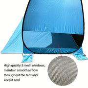 Ten przenośny namiot plażowy oferuje doskonałą ochronę przed słońcem dla 2-3 osób. Dzięki ochronie UPF 50+ możesz bezpiecznie cieszyć się czasem na świeżym powietrzu, nie martwiąc się o szkodliwe promieniowanie UV. Lekka konstrukcja sprawia, że jest łatwy do przenoszenia i szybki w rozkładaniu, a przestronne wymiary zapewniają wystarczający cień dla komfortowego wypoczynku na plaży lub podczas biwakowania. Oddychające okno z siatki zapewnia dobrą wentylację, dzięki czemu zawsze masz orzeźwiające otoczenie.
