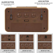 Ten stylowy drewniany cyfrowy budzik oferuje elegancki i nowoczesny wygląd z wyraźnym wyświetlaczem LED. Budzik pokazuje nie tylko godzinę, ale także datę i temperaturę, co czyni go idealnym do twojej szafki nocnej lub biurka. Duży ekran ułatwia odczyt godziny, a drewniane wykończenie dodaje naturalnego akcentu do twojego wnętrza. Budzik zasilany jest przez 3 baterie AAA (nie dołączone), dzięki czemu nie potrzebujesz kabli do instalacji.