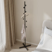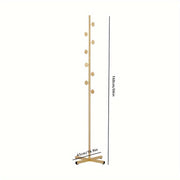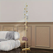 Ten metalowy wieszak łączy w sobie wyrafinowane złote wykończenie z prostym, minimalistycznym designem. Dzięki solidnej podstawie jest stabilny, a okrągłe haki oferują wystarczająco dużo miejsca na kurtki, kapelusze i torby. Idealny, aby utrzymać wejście, sypialnię lub biuro w porządku i stylu. Subtelny dodatek, który łączy funkcjonalność z luksusem.