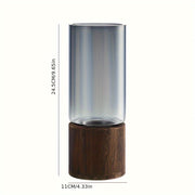 Luksusowy Szklany Wazon z Drewnianą Podstawą - Elegancki i Nowoczesny