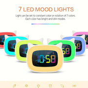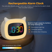 Uroczy Budzik z Kocimi Uszkami – RGB Lampka Nocna z 18 Melodiami i Ładowaniem USB