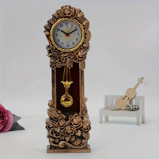 Zobacz szczegółyElegancki Vintage Zegar z Wahadłem z Kwiatami – Stylowa Dekoracja do Twojego Salonu lub Biura
