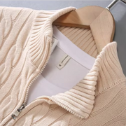 Zůstaňte v teple a stylu s tímto krásným pánským pleteným svetrem, ideálním pro chladnější dny. Klasický design se zipem usnadňuje oblékání a svlékání svetru, zatímco copánková struktura zajišťuje nadčasový vzhled. Vyrobeno z vysoce kvalitního materiálu, tento svetr poskytuje pohodlné nošení a udržuje teplo, ať jste kdekoli. Přidejte tento všestranný svetr do svého šatníku a zažijte pohodlí a styl, které nabízí.