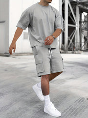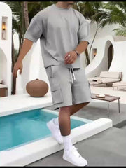 Tento pohodlný pánský set kombinuje volný střih s moderním vzhledem. Měkký a prodyšný materiál zajišťuje pohodlí po celý den – ideální jak pro každodenní aktivity, tak chvíle odpočinku. Šortky jsou vybaveny praktickými kapsami pro větší funkčnost. Ideální pro nenáročný a stylový vzhled, kamkoli jdete.