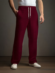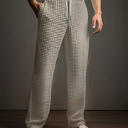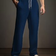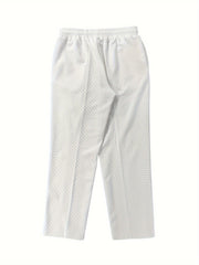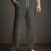 Tyto pánské kalhoty jsou vyrobeny z odolného polyesteru s texturovaným materiálem, který dodává moderní vzhled. Jednoduchý střih a šňůrka v pase zajišťují pohodlné a nastavitelně padnoucí nošení. Díky praktickým kapsám a snadno udržovatelnému materiálu jsou tyto kalhoty ideální pro každodenní použití, jak doma, tak na ulici. Snadno je zkombinujete s různými styly pro stylový, ležérní vzhled.