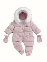 Snowy Baby Romper je ideální pro udržení vašeho miminka v teple a stylu během chladnějších měsíců. Tento měkký a silný zimní overal má roztomilou kapuci z umělé kožešiny a je ideální pro hraní venku nebo procházky v chladu. Praktické falešné kapsy a luxusní design dělají z tohoto oblečení nejen praktický, ale také velmi roztomilý kousek. Ideální pro vaše miminko nebo malé dítě, aby pohodlně a bezpečně přečkalo zimu.