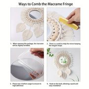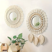 Boho Wall Mirror with Macramé and Tassels – Decorative Mirror with Beads and Feathers