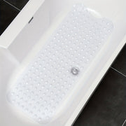 This extra-long anti-slip mat provides optimal grip and safety during bathing or showering. Thanks to the suction cups on the bottom, the mat stays firmly in place, even on wet surfaces. Integrated drainage holes prevent water accumulation, making it hygienic to use. Its large size offers 30% more coverage than standard mats.