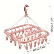 This practical, foldable drying rack is perfect for drying socks, underwear, and other small clothes. Thanks to the strong clips, everything stays in place, even in the wind. The lightweight and foldable design makes it ideal for both indoor and outdoor use. Easy to hang on a hanger or clothesline, saving valuable space.