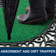 This heavy-duty PVC mat is the perfect choice for large doors. The non-slip design ensures the mat stays in place even with heavy foot traffic. The semicircular mat is designed to effectively remove snow, mud, and dirt, keeping your home clean. The absorbent material helps soak up dirt and moisture, and the mat is easy to clean, making it ideal for everyday use. The modern design fits perfectly for both indoor and outdoor applications.