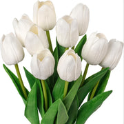 This set of 10 artificial tulips adds a fresh, natural look to your interior or special occasions. The flowers are made of high-quality PU materials, offering a realistic appearance and feel without requiring maintenance. The flexible stems can be bent as desired, making them perfect for any vase or floral arrangement. Whether you're decorating a wedding, garden party, or other event, these tulips bring an elegant atmosphere to any room.