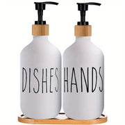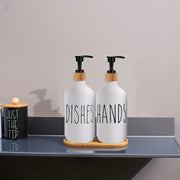 This soap dispenser with a wooden base is a stylish addition to your kitchen or bathroom. Its elegant design keeps liquid soap organized and always within reach, while giving the space a modern look. Made from high-quality materials, this dispenser is not only functional but also durable and easy to use. Keep your soap stylish with this beautiful set.