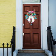 This cheerful Easter wreath is a great way to decorate your home for Easter. The colorful ribbon and cute flowers create a joyful and spring-like look. The design with adorable bunny ears and a fluffy tail makes it a charming addition to your front door, whether for an Easter party or just as everyday decor. No power needed, easy to hang, and ready to bring spring into your home!