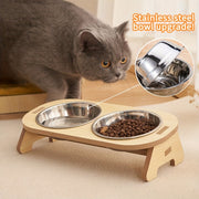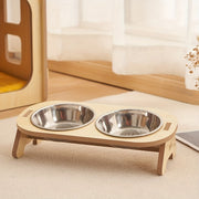 This elevated cat bowl set offers the perfect solution for your cat's comfortable eating experience. The modern design with a wooden base places the bowls at an ergonomic level, helping to reduce neck strain during eating. The steel bowls are durable and easy to clean. This set is ideal for promoting a healthy eating style and is suitable for both eating and drinking.